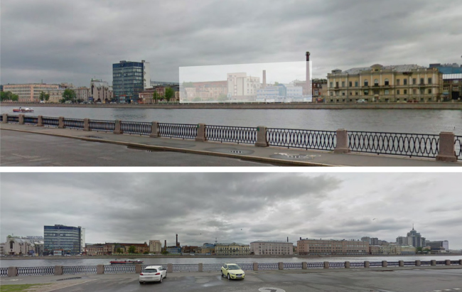Никита Явейн представил проект дома на Пироговской набережной. Участок располагается вплотную к магистрали, между особняками владельцев мануфактур и: оба здания признаны объектами культурного наследия. Раньше эту часть Петербурга краснокирпичные заводские цеха с пиками труб, сейчас доминанты стали крупнее и разнообразнее: выделяются на их фоне, конечно же, громады комплексов и , а также и бизнес-центр «Нобель», построенный еще в советское время. На месте же будущего дома сейчас «провал» – автомойка и стоянка.