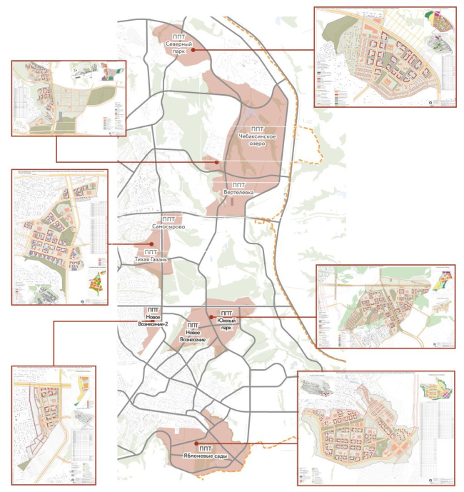 Территория проектирования делится на девять участков разной площади, для которых Институт разработал концепции и впоследствие – проекты планировки территории. Каждый будущий микрорайон самодостаточен, поскольку насыщается социальной инфраструктурой, торговыми и бизнес-центрами, спортивными и культурными объектами, бульварами и парками, а также объектами инженерной и транспортной инфраструктуры. В каждом микрорайоне появится деловое ядро, зоны отдыха и досуга. Плотность застройки при этом будет несколько ниже, чем в «срединном поясе» Казани, сформированном в советский период, или сопоставимой с ними на отдельных узловых территориях, и будет примерно в полтора раза ниже, чем в постсоветских районах.