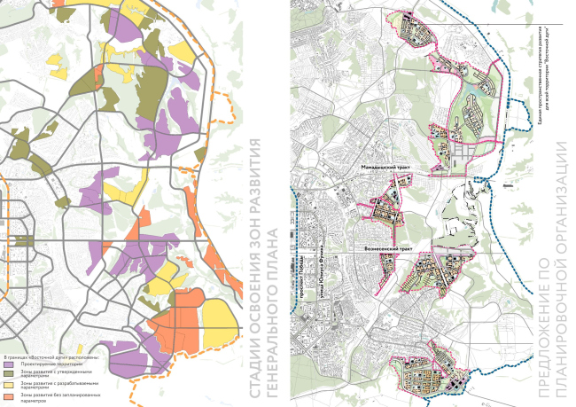 Концепция комплексного освоения «Восточной дуги» является одним из крупнейших региональных проектов Института с точки зрения как масштаба территории, так и детализации проектных решений. Этот проект является частью непрерывного цикла системной и последовательной работы Института с Казанью с 2014 года – от подготовки генерального плана, ПЗЗ и МНГП до разработки документации по планировке территории. Такая практика комплексного взаимодействия с территорией «от общего к частному» позволяет Институту наращивать свои компетенции в регионе и выступать в качестве одного из ключевых градостроительных экспертов, оценивающих и определяющих направления пространственного развития города.