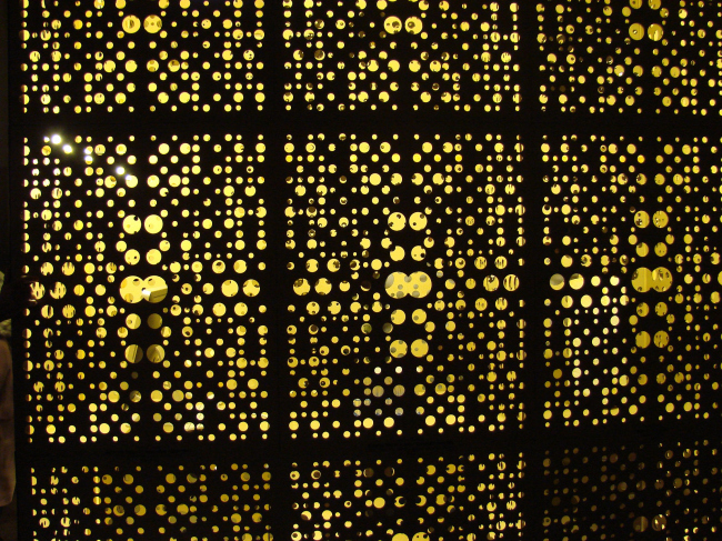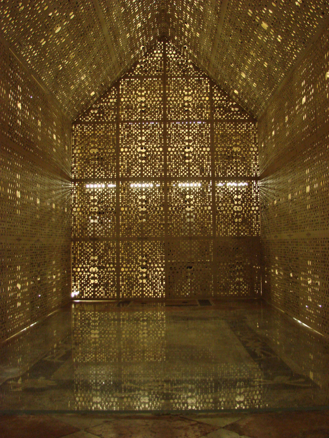 Теперь про "три существенные ошибки" куратора: "этическую, пластическую и семантическую". В центре церкви находится надгробие венецианского дожа Мочениго, на деньги которого церковь была построена, с вырезанной надписью “Благородный прах в тщеславном погребении” и мраморной мозаикой из скелетов и черепов с костями. "Семантический парадокс" роддома-колумбария, о котором рассуждает Асс, здесь возникает в любом случае, с объектами ли на подиумах или объектами, спрятанными в стенах вертепа-ковчега. Отсюда совершенно осознанное появление двух новых для этой конкретной ситуации экспонатов - моего "Костяного мавзолея" и "вечного огня" глиняного дома-очага Александра Бродского, дополняющих тему рождения темой смерти. Не смерти дожа, а смерти и вечной памяти архитектурного сооружения. Если бы не наши с Бродским погребальные объекты, снимающие семантическую нагрузку на центр тяжести инсталляции, умерший триста лет назад дож так и остался бы один в кощунственном окружении жизнерадостных концептуальных младенцев. Оба объекта, кстати, пластически поддерживают светящийся кружевной вертеп: один кружевом доминошных точек, другой - светом игрушечного камина у Бродского. Е.В.Асс увидел в нашем домике "замурованных младенцев", а мы, проектируя, думали о драгоценной дарохранительнице, и многие посетители выставки этот образ вполне считали. Только что, пока я писал эти строчки, Денис Летбеттер, фотограф из Сан-Франциско прислал мне еще одну ассоциацию к нашей инсталляции - в церкви Сан-Стае снималась финальная сцена похорон мистического триллера Николаса Роуга "А теперь не смотри!". Главный герой фильма, что любопытно, архитектор...