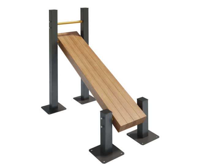 Лавка с упорами для воркаута – это одновременно брусья, низкий турник и шведская стенка. С помощью этого вида оборудования прорабатываются мышцы рук и пресса.