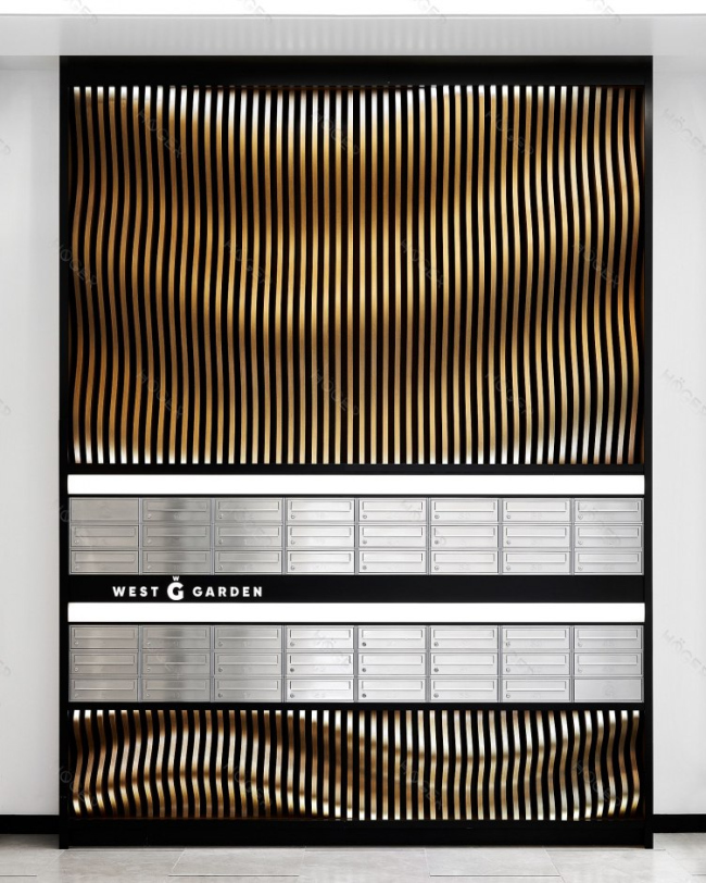 Почтовые ящики для ЖК Небо из латуни, маркировка сквозная лазерная резка с подложкой. Оклад из керамогранита© HÖGER