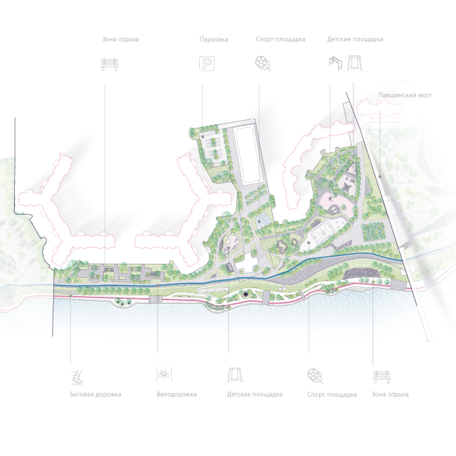 Благоустройство набережной в районе Павшинской Поймы© Basis architectural bureau
