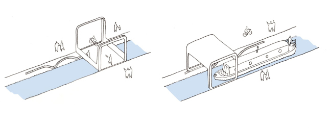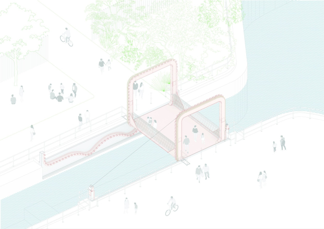 В качестве материала выбрали сталь кортен и древесину дуба. Мост выглядит намеренно скромно: главное здесь – не форма, а его способность к движению, а также роль местного аттракциона.