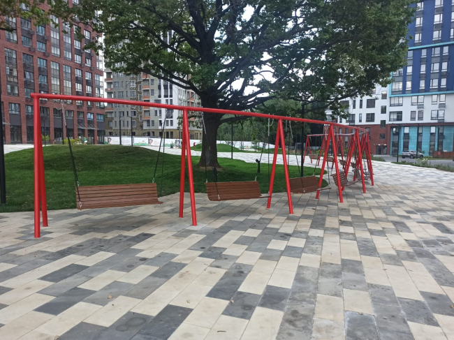 Качели в ЖК Скандинавия© Фотография предоставлена компанией «Хоббика»