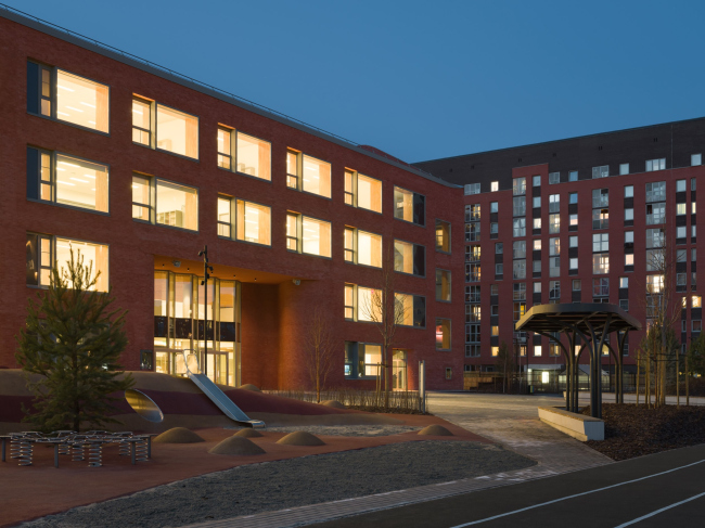 Нас всегда интересовала архитектура так называемого Амстердамского объединения, которое прославилось живописной кирпичной кладкой и смелым формообразованием. Архитекторы этого направления вдохновлялись экзотическими мотивами, поэтикой кораблей и фортов и всегда говорили об архитектуре, как о приключении. Вот с такими же настроениями мы проектировали школу для обучения и одновременно как пространство игр, общения, каких-то непредсказуемых событий. Очень надеемся, что благодаря придуманному нами новому образу места школьная жизнь будет казаться ученикам менее однообразной.