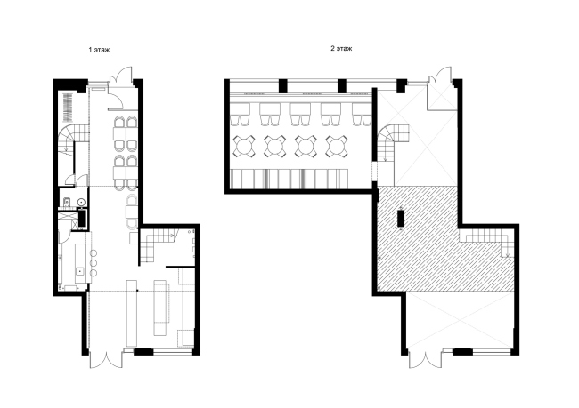 Описание предоставлено архитекторами Ресторан открылся в одном из двухэтажных коммерческих помещений ЖК Life Кутузовский на Гжатской улице. На первом уровне с высокими потолками было решено разместить технологию ресторана, открытую кухню, зону бара, на втором – камерный обеденный зал.