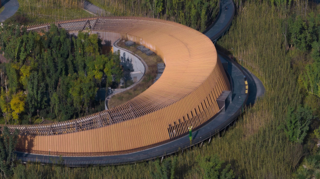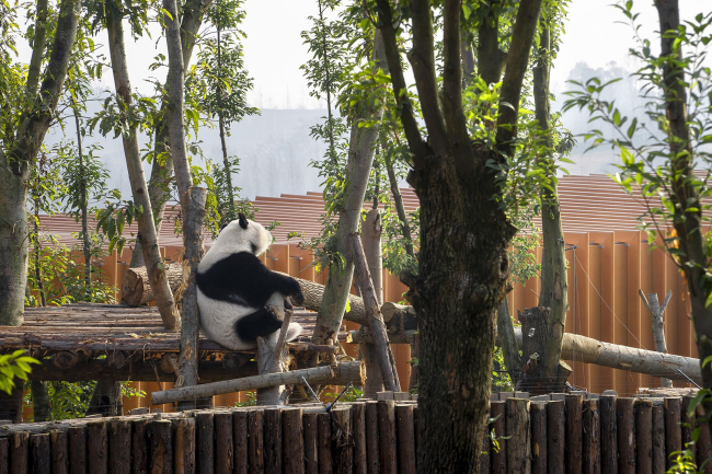 У знаменитой Базы панд в Чэнду, где с 1987 предпринимаются успешные усилия по разведению больших панд и стабилизации их популяции, появился новый «раздел». Это четыре кольцеобразных павильона для животных, расположенные на заросшем бамбуком склоне: эта полупарковая среда вмещает все постройки базы.
