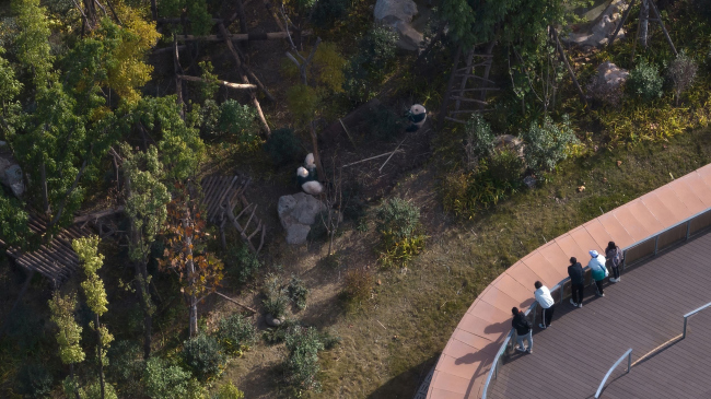 Круглые дворы, где создана типичная для ареала панд природная среда, позволяют ученым изучать поведение панд в приближенным к естественным условиям.