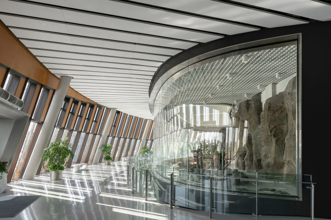 Кольца вмещают жилища для панд с пространствами для отдыха и развлечений, помещения для сотрудников базы, подсобные пространства (например, хранилище для ростков бамбука – основы рациона для панд). Предусмотрены образовательные и выставочные помещения, где туристов знакомят с назначением и устройством базы, схемой сохранения больших панд как вида и другими важными темами, связанными с охраной окружающей среды. Не забыты, конечно, и смотровые галереи: посетители могут с удобством наблюдать за животными, однако физическая граница между ними всегда сохраняется.