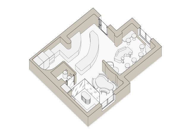 В основу концепции легла идея безбарьерного пространства, которое обволакивает, замедляет и защищает каждого, кто попадает внутрь. Для достижения этого эффекта архитекторы сгладили все углы, тщательно подобрали цвет отделки и мебели, проработали сценарии освещения и посадочные зоны под разные потоки посетителей – и под разное их настроение.