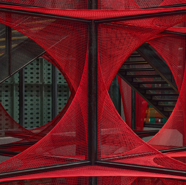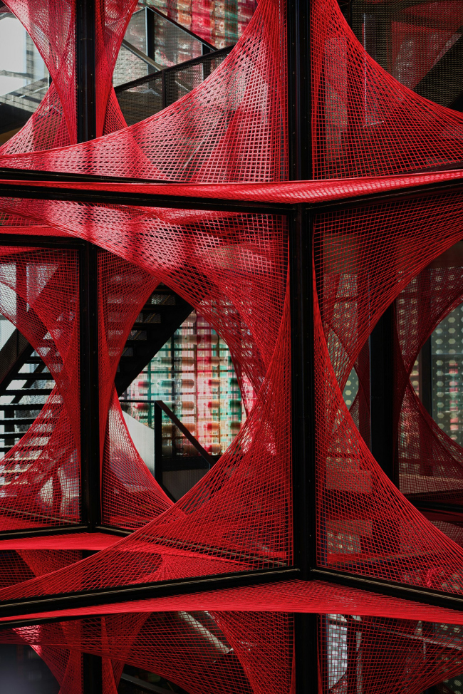 Музейная инсталляция высотой в несколько лестничных пролетов (13 м) практически касается кровли здания. Ширина и глубина конструкции обе равны 8 м.