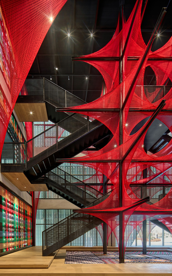Арт-объект, разработанный студией YI+MU, установлен в Музее парчи туцзя, открывшемся в прошлом году в Чжанцзяцзе, провинция Хунань.