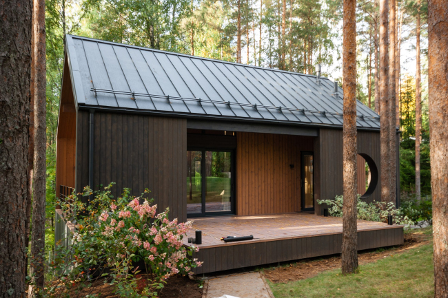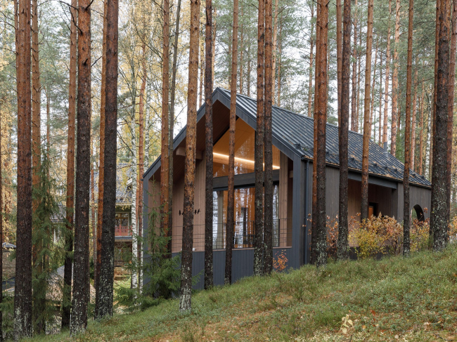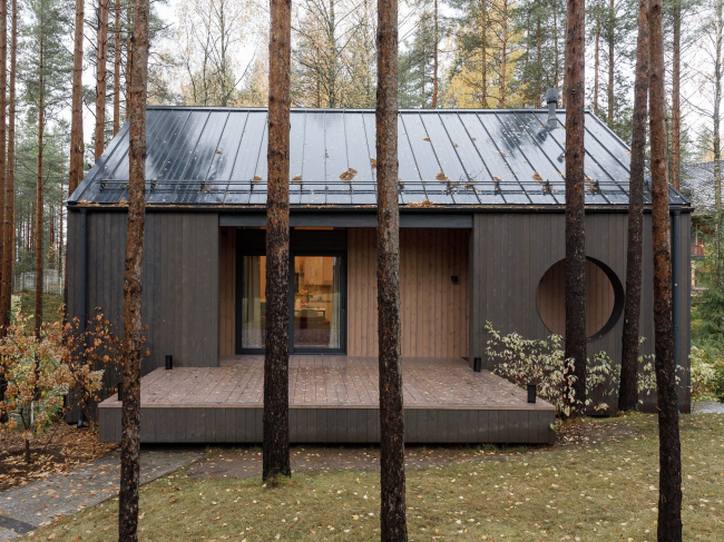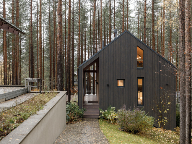 Дом для старта самостоятельной жизни подростка построили в Ленинградской области рядом со «взрослым» коттеджем. Команда проекта постаралась сделать его вневременным и органичным окружению – кусочку леса с высокими соснами и черничниками.