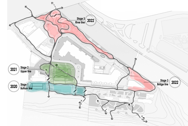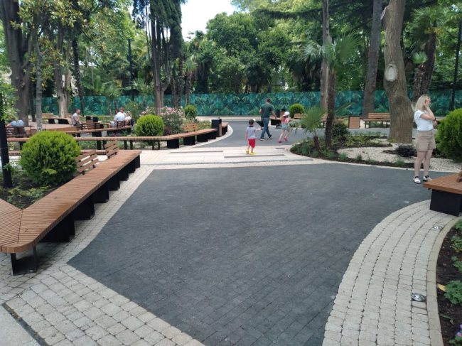 Обозначив «зону влияния» деревьев, архитекторы проложили маршруты для посетителей. Территорию очистили от киосков, существующий променад дополнили двумя широкими дорожками, сокращающими путь до пляжа, а также извилистыми тропинками, уводящими в глубину парка. На пересечении ключевых маршрутов разместили питьевой фонтанчик.