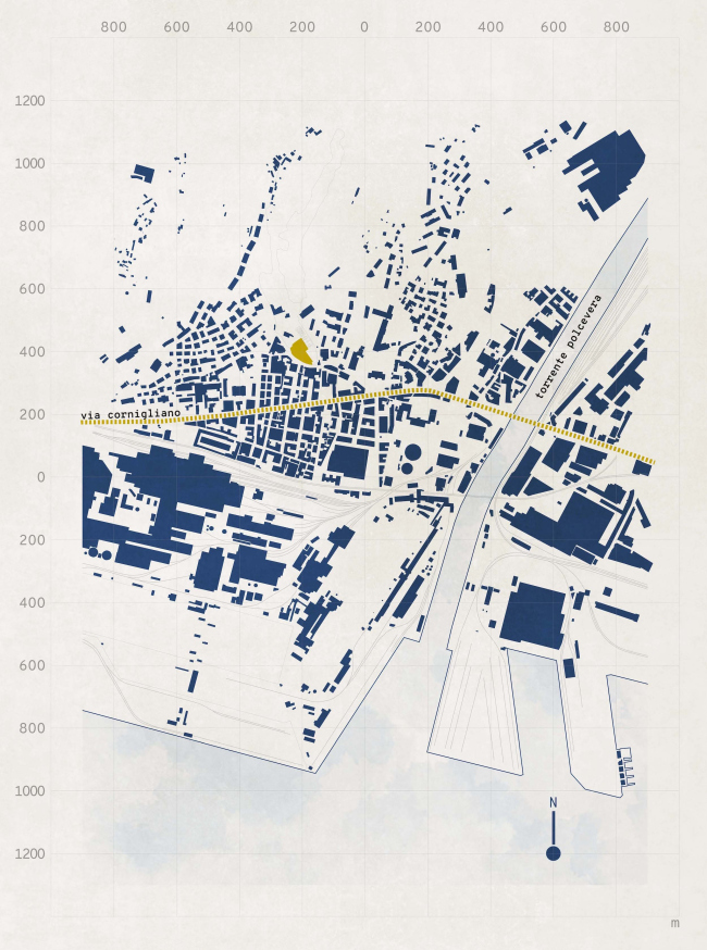 Район Корнильяно находится примерно в семи километрах от центра Генуи, на ее западной окраине, в холмистой местности на берегу реки Польчевера. Когда-то популярное место отдыха аристократии и строительства частных резиденций, после Первой мировой войны и открытия крупного сталелитейного завода оно превратилось в активную промзону с жильем для рабочих довольно низкого качества.