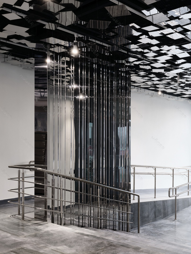 Отделка из металлических листов может быть применена не только для стен и перегородок, но и для колонн, пилонов, потолков, откосов и обрамлений проемов, в качестве перил и ограждений, моделирующих пространство ширм, декоративных экранов и т.п.