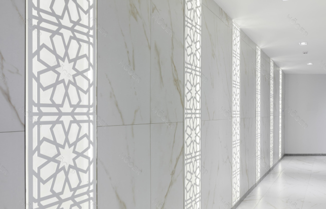 Лазерная резка и обработка позволяют создать из стальной панели настоящий предмет дизайна. Панели-гравюры имеют рельефную поверхность, рисунок на них создается посредством сочетания текстур. Перфорированные панели могут содержать любой орнамент, раппорт или даже сюжет. Например, сложные геометрические узоры, которые придают стенам и колоннам выраженную четкость; или мотивы, заимствованные из природных элементов; или же образы цифровой среды, и этот ряд можно продолжать бесконечно – он ограничен только фантазией авторов проекта.