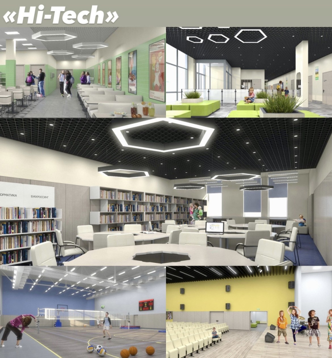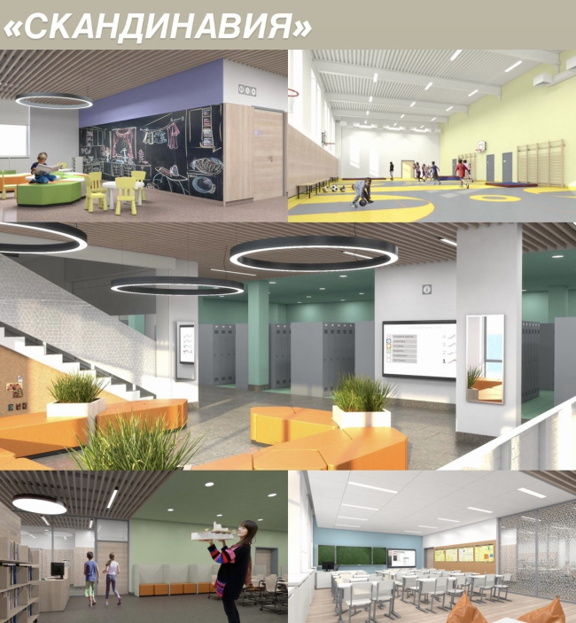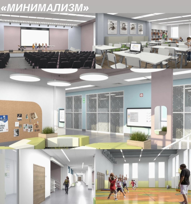 Методичка содержит три варианта концепций дизайн-проектов для всех школьных помещений, в том числе: общественных пространств, спортивных залов, учебных кабинетов, столовых, библиотечных центров, административно-бытовых помещений и других.