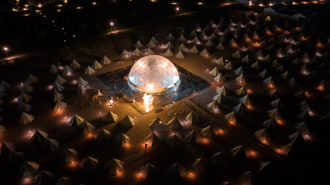 К самым заметным из всех проходящих в Аранье событий принадлежит ежегодный театральный фестиваль, на который съезжаются толпы людей. В этом году он проходил с 12 по 25 июня. Специально для него Ма Яньсун и придумал масштабную инсталляцию «Город времени». Она представляет собой своего рода лабиринт, возведенный прямо на пляже: из песка вырастают «комнаты» разной формы – открытые пространства для арт-инсталляций и скульптурных объектов, более просторные площадки для разного рода перформансов, перекрытые навесами помещения для камерных концертов и танцевальных постановок. Двухметровые стенки лабиринта выполнены из повторно использованных металлических панелей.