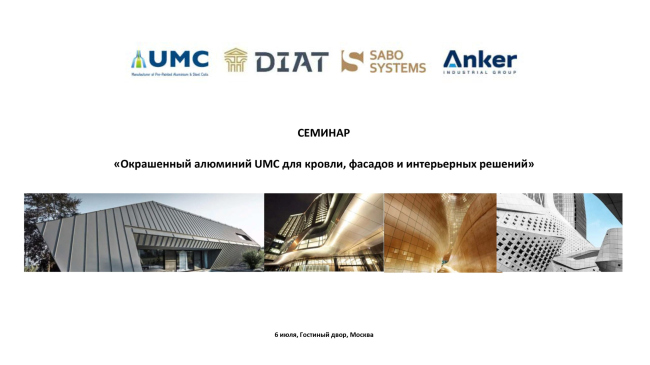 Совместный семинар UMC, Риверклак, SABO SYSTEMS, ANKER «Окрашенный алюминий UMC для кровли, фасадов и интерьерных решений»