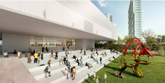 Поэтому задачей участников конкурса стало не только неизбежное расширение музея, но и превращение его в более открытый вовне; интерьеру требовалось придать цельности, что особенно важно с учетом многочисленных антресольных уровней. По замыслу Nieto Sobejano Arquitectos, предложивших самый сдержанный вариант из всех финалистов, большую роль будет играть солнечный свет. Медиафасады и прямоугольный объем нового выставочного зала (его поместят сверху) привлекут внимание издалека, для отдыха горожан предусмотрены озелененная кровля-терраса и ступени-трибуны – для любования парком или проведения концертов и кинопоказов на свежем воздухе.