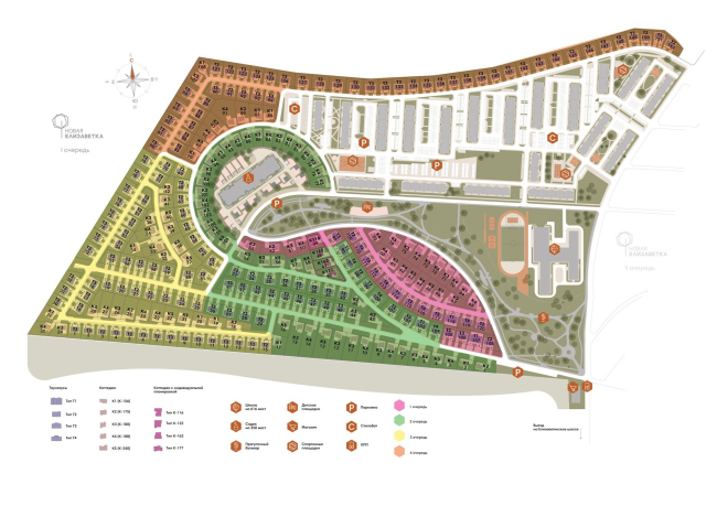 «Новая Елизаветка» – достаточно большой микрорайон: согласно проекту на площади в 102 га здесь разместятся 354 таунхауса, 343 индивидуальных и 19 многоквартирных домов, а также детский сад и школа.