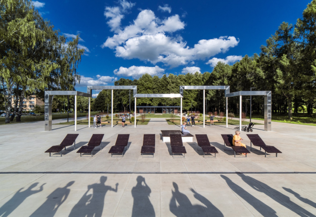 Вместо скамеек без спинок появились модные шезлонги, где молодежь с удовольствием делает селфи, а для спокойных прогулок и медитации по периметру установлены лавки.