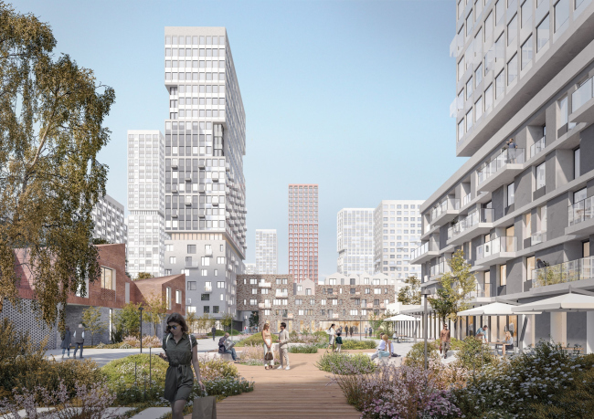 Концепция, о которой пойдет речь, подготовлена в рамках закрытого конкурса, организованного застройщиком. Она не будет реализована, однако архитекторы ОСА считают важным рассказать о работе, которая объединяет три важных для бюро принципа: преемственность, средовое разнообразие и комплексное освоение.