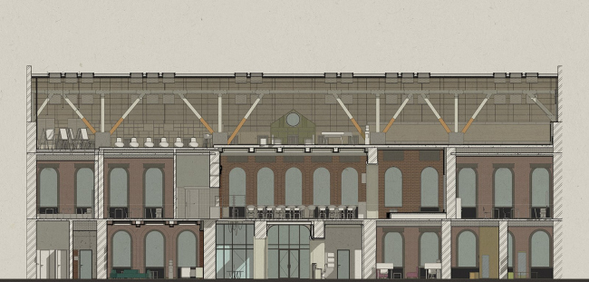 Внутренняя структура здания претерпела за свою жизнь множество перестроек, что было использовано при формировании помещений, но все же охранный статус объекта наследия наложил значительные ограничения на планирование помещений в здании. Современные интерьеры школы сочетаются с историческими сохранившимися элементами, которые намеренно раскрыли, чтобы показать связь времен и ценность здания.