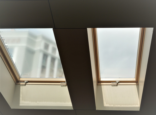 Для обеспечения наилучшей освещенности окна сгруппированы по два и три с помощью системы изоляционных окладов «Комби» FAKRО серий KSV1 и KSV3. Основной функцией окладов является отвод воды, а также защита от снега и ветра, здесь же они также важны с точки зрения эстетики: окна мансарды отлично видны с улицы, и при этом они хорошо вписываются в исторический облик здания.