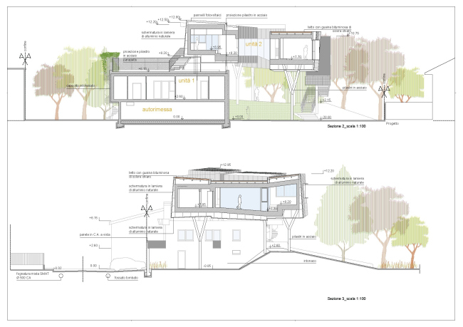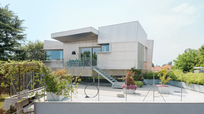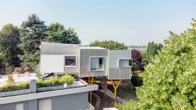Небольшая коммуна Камбьяно расположена всего в 12 километрах к югу от Турина. Здесь, в центре, недалеко от железной дороги, на зеленой частной территории располагался жилой дом, построенный еще в 70-х годах прошлого века. В процессе реконструкции команда архитекторов под руководством основателя студии ELASTICOFarm Стефано Пуятти «вырастила» из ничем не примечательного старого объема новый, решенный как поднятые на опоры отдельные объемы среди ветвей. Именно такой подход к редевелопменту послевоенной застройки – использовать ее буквально как платформу для собственных идей и формирования нового жизненного уклада – Пуятти считает оптимальным.