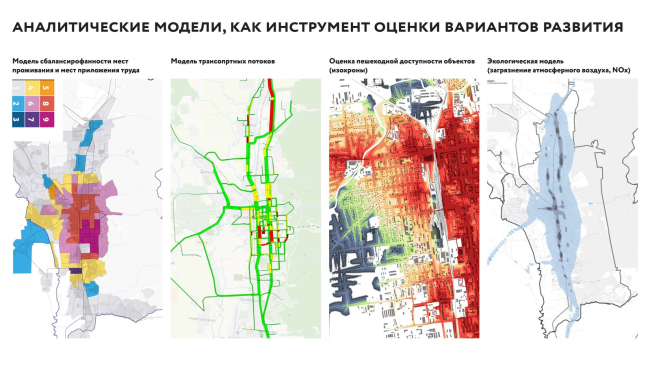 После выбора сценария следует нюансная работа и уточнение. Этот этап также сопровождается моделированием: мы проверяем, как изменения влияют на загрузку инфраструктуры, на обеспеченность жителей теми или иными ресурсами. Этот инструмент удобен и при согласованиях.