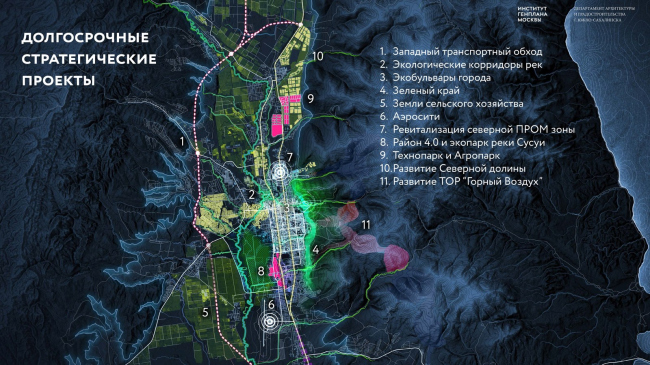 Григорий Мустафин, главный архитектор Института Генплана: Мы начали в 2020 году, в июле 2022 внесли правки по результатам общественных слушаний, а в сентябре 2022 документ был утвержден. Параллельно в апреле 2022 года начали работать с мастер-планом первого пояса агломерации. Мы объединили и синхронизировали все намерения по развитию Южно-Сахалинска, в результате город получил комплексный пакет документации для всех нужд: ведения градостроительной деятельности, финансирования, презентации себя на федеральном уровне.
