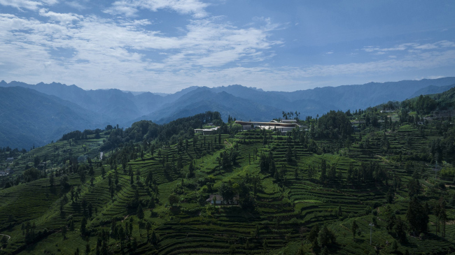 В холмистой местности, занятой террасными плантациями чая, не так много пространства для строительства, в то же время здесь требовались не только помещения, но и открытое общественное пространство – площадь для проведения различных событий или просто отдыха.