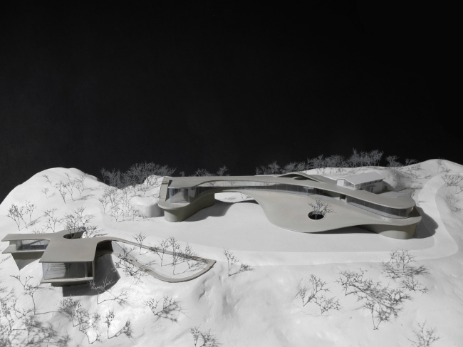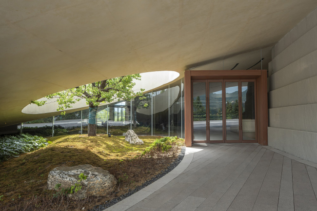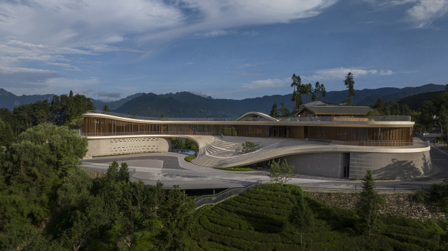 Основой проекта стала тема террас для выращивания чая, которые вдохновили как общий криволинейный план постройки, так и изгибающиеся «парадные» ступени, ведущие сразу на второй этаж. Они могут служить как зрительские места или просто как сидения для паузы в осмотре достопримечательностей. Здание приподнято над землей как мост, поэтому часть площади под ним работает как укрытие для туристов на случай дождя.