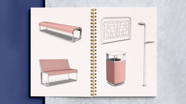 Основной концепт бренда – это комплексные системы благоустройства городской среды. Сейчас в ассортименте 17 линеек, каждая выполнена в своей стилистике и включает в себя определенный набор элементов: осветительные комплексы, лавки, скамьи, ограждения, велопарковки, уличные урны.