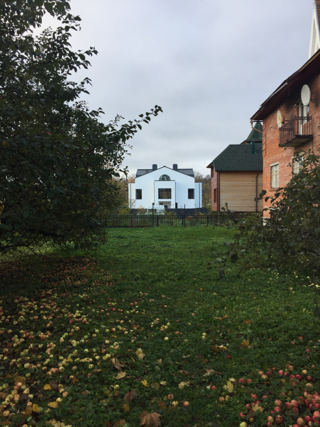 Отсутствие декора компенсируют оконные отливы, водосточные трубы и даже решетки вытяжных систем дома. Дом, по сути, строил сам заказчик со своей бригадой, и качество исполнения оставило авторов в большом удовлетворении. По профессии заказчик – врач, для него архитекторы строили в Стрельне, которая также не осталась незаметной в профессиональной среде.