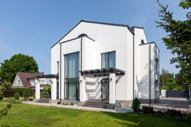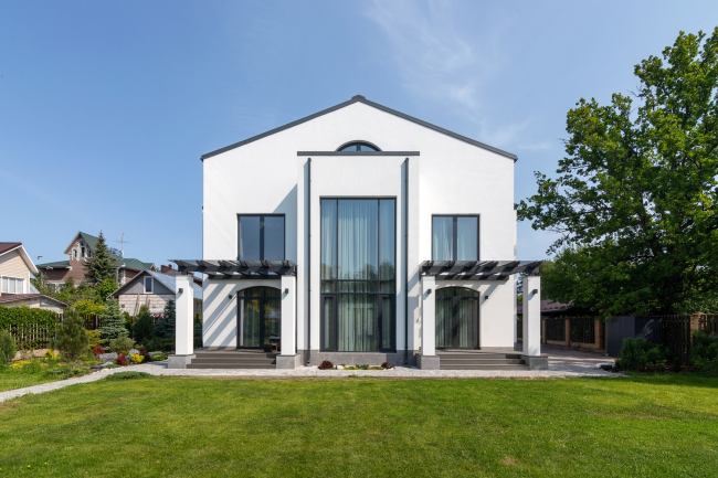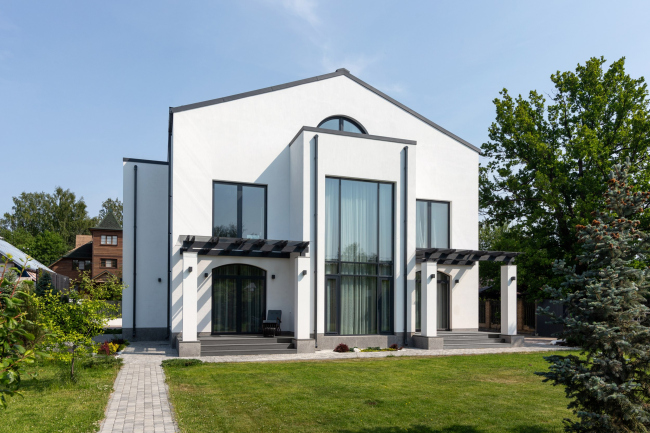 Загородный дом, спроктированный мастерской «Головин&Шретер» для коттеджного поселка в Петергофе, соединяет две студенческие мечты автора: виллу «Ротонда» Андреа Палладио и виллу «Карма» Адольфа Лооса. Результат – премия главного петербургского профессионального фестиваля «Архитектон 2023».