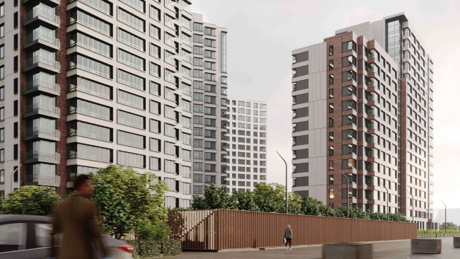 Предложенные мастерской Феликса Буянова решения генплана достаточно близки к тем, что делал «Проекс», однако архитекторам удается создать более живописную силуэтную группу, которая работает с нескольких ракурсов: Искровского проспекта, улицы Тельмана и переулка Челиева. Высота акцентной башни достигает почти 57 м. Для облицовки фасадов предполагается использовать клинкерную или бетонную под клинкер плитку, фиброцементные и алюминиевые композитные панели. Для цоколя – натуральный гранит.