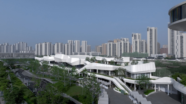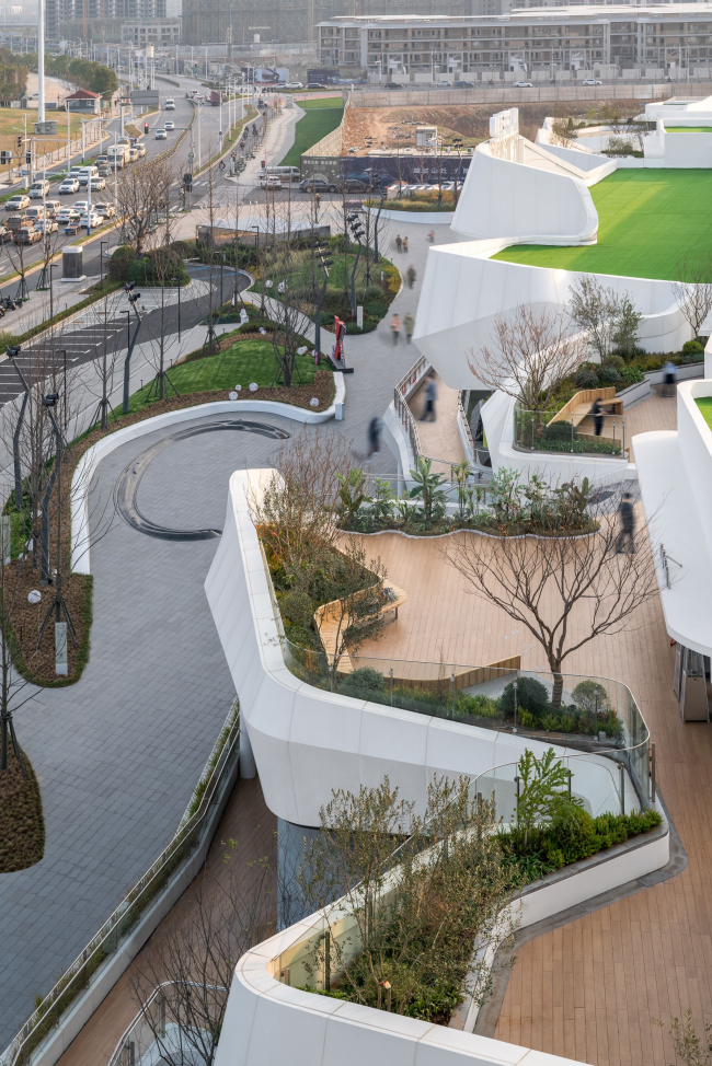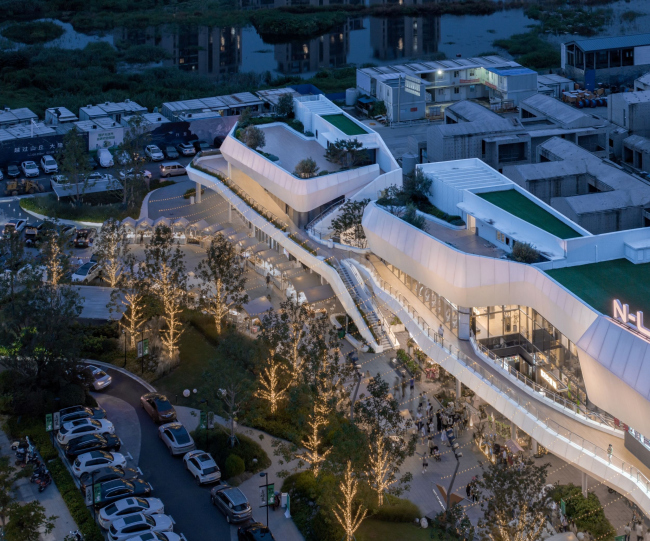 Сейчас к нему присоединилась «торговая улица», спроектированная сингапурским бюро SPARK. Она вытянулась в несколько ярусов вдоль озера, от которого ее отделяет шоссе. С другой стороны от ТЦ расположен комплекс из регулярно поставленных вилл.