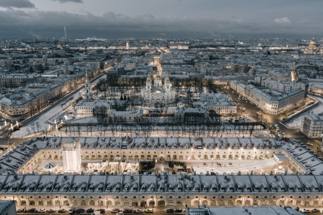 Согреваться душой и телом в зимнее время можно разными способами. Ни один летний фестиваль не повторит атмосферу рождественских ярмарок и гуляний, а чай или глинтвейн в морозный день – совсем не меньшее удовольствие, чем прохладный лимонад в жаркий. Именно зимой особенно хочется праздника, ожидания чуда и карнавального веселья. Поэтому большинство концепций благоустройства предполагает событийные пространства, где удобно организовать концерт или ярмарку, поставить нарядную елку и продавать сбитень. Образцовым нам кажется зимнее благоустройство Никольских рядов в Петербурге в тот год, когда по проекту Katarsis построили катальную горку, карусель, сцену, смотровую башню и павильоны, где можно было раздобыть пряной и горячей еды.