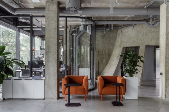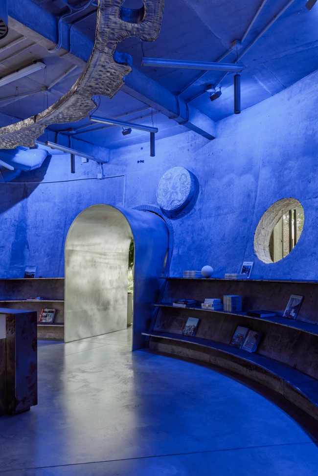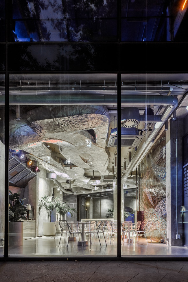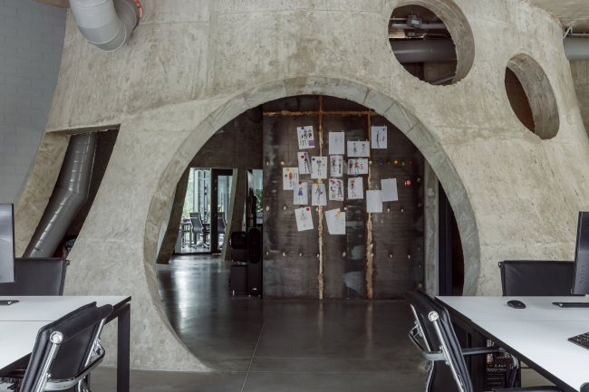 Внутри бетонной матрешки расположились лестница и шахта лифта. В подвальном этаже появился концертный зал и мастерские, на первом – открытое для всех горожан общественное пространство, где можно выпить кофе, послушать пластинки, поиграть в настольный теннис и даже провести деловые переговоры. В магазине будут продавать товары, произведенные креативными предпринимателями.
