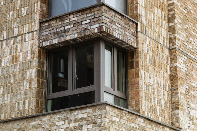 Эстетичный фасад. Часто кирпичная облицовка ставится на перекрытие, поэтому мы видим торцы железобетонных конструкций, которые «полосят» собой здание. Система Baut полностью исключает такие неаккуратные моменты за счёт того, что облицовочная кладка опирается на кронштейны.