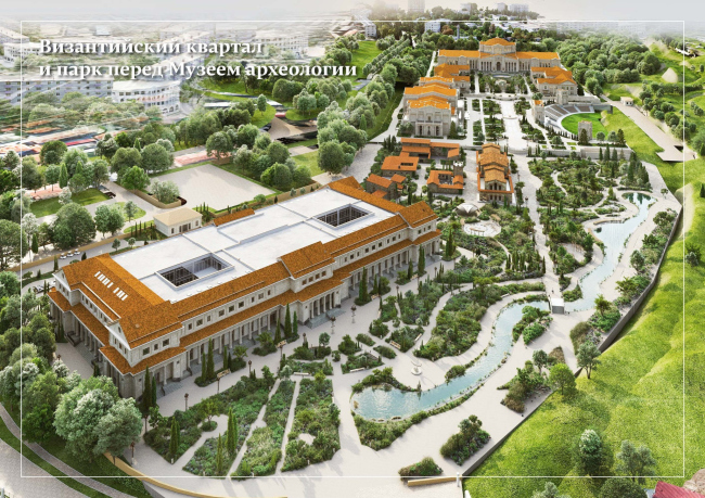 Общий вид исторического парка от Музея античности и ВизантииИзображение предоставлено «ОртОст-Фасад»