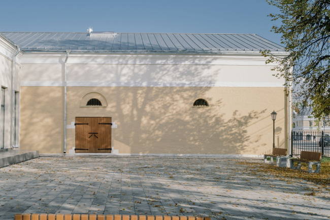 Это и восьмиугольные планы, отсылающие к «восьмерику» – строительному модулю деревянного северного зодчества, и шатровые крыши, и небольшие окна, и деревянные наружные стены, напоминающие о традиционном срубе, а также размеры экспозиционных залов, повторяющие размеры северных деревянных храмов с так называемыми «небесами» – особыми потолочными перекрытиями, расписанными на библейские сюжеты. Коллекция таких «небес», подвешенных на специальных тябловых каркасах, будет экспонироваться в Депозитарии, один из залов которого мы решили накрыть стеклянным кровельным фонарем, чтобы зрителю через него открывался вид на звездное северное небо.