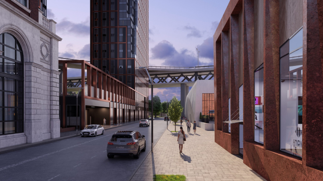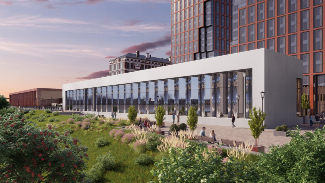 Оба корпуса перекликаются с окружением. Кортеновый выстраивает диалог с пилонадой жилых башен и образует с ним структурно осмысленную городскую улицу с некоторой «жестчинкой», восходящей к памяти о заводском прошлом.