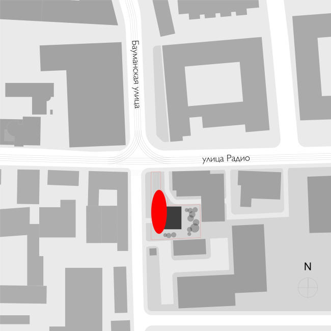 Но самое верное утверждение в том, что будущий БЦ стоит на самом перекрестке улиц Радио и Баумана, это место – небольшой, но градостроительный «шарнир», еще одна невнятная стилизация тут будет «грязным пятном». Предложенное решение определенно не такое.