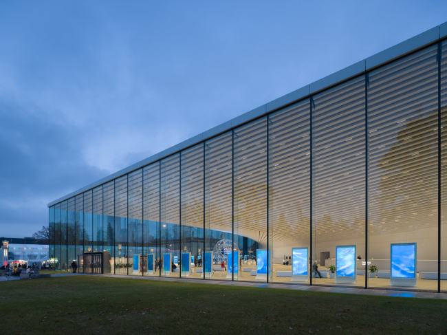 Очень полезное качество для экспозиционного здания, будь то музей или павильон-музей, – режиссура впечатлений зрителя. Здание работает с посетителем раньше и, может быть, даже эффективнее экспозиции (хотя она тут крайне зрелищна), – поскольку обращается напрямую к эмоциям и самоощущению человека в пространстве.