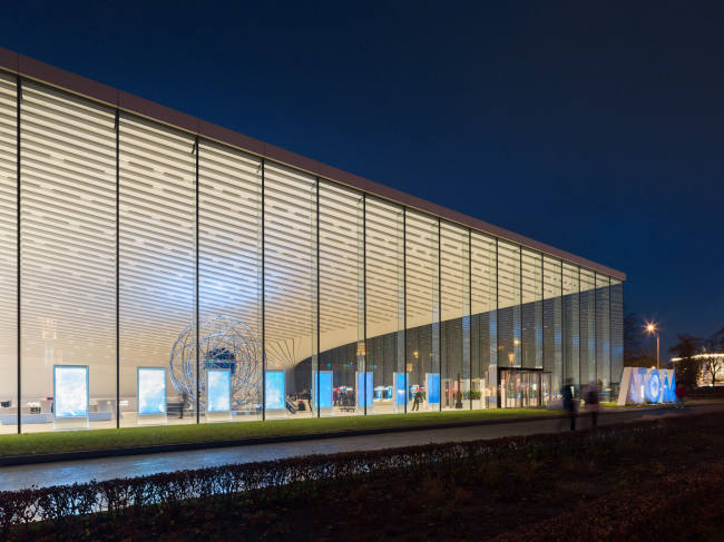 Юлий Борисов неоднократно формулировал работу с уникальными объектами как главный принцип архитекторов UNK. Пока что, по ощущениям, хотя и в БЦ Академик, и Земельном есть решения из разряда уникальных, и будут они в здании Роскосмоса, – павильон лидирует и выступает главной визуализацией тезиса об уникальных задачах. Бывают, конечно, здания и с большими конструктивными вызовами, хотя бы с большими пролетами, взять хотя бы современные аэропорты, и тем не менее он встает в их ряд.